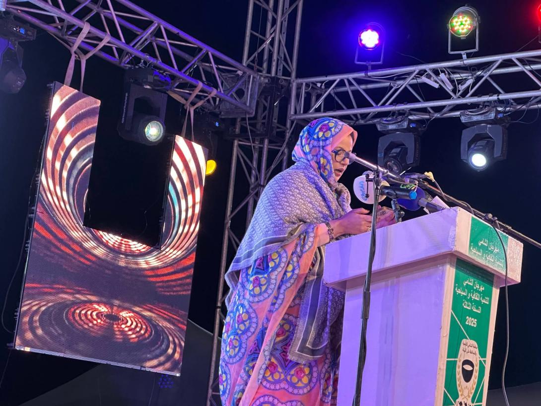 وفي هذا السياق، حظي الدور المحوري الذي اضطلعت به رئيسة المهرجان، السيدة يغنيه باب اعل محمد، بإشادة واسعة من الحضور، حيث كانت، منذ الإعداد الأول وحتى لحظة الافتتاح، عنوانًا للتفاني وحسن التنظيم، وركيزة أساسية في إنجاح هذه التظاهرة الثقافية. فقد قادت فريق العمل بروح المسؤولية والإيمان برسالة المهرجان، وأسهمت بجهودها المتواصلة في تحويله إلى موعد سنوي راسخ في الذاكرة الثقافية للمدينة، وبصمتها الواضحة في التخطيط والتنسيق والانفتاح على الشركاء، جعلت من المهرجان نموذجًا في التنظيم وثراء البرامج.