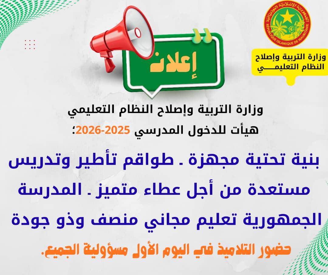 ويأتي هذا الإعلان في وقت تبذل فيه الدولة جهودًا كبيرة من أجل تكريس مدرسة جمهورية عادلة، توفر تعليمًا مجانيًا، منصفًا، وذا جودة عالية، بما يضمن تكافؤ الفرص بين جميع أبناء الوطن دون استثناء.