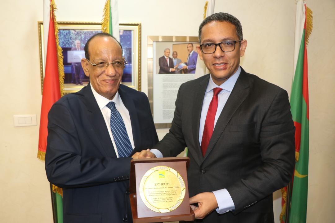 قدم المفوض السامي لمنظمة استثمار نهر السنغال (OMVS)، السيد محمد ولد عبد الفتاح، درعا تكريميا للسيد ببها ولد أحمديوره، الرئيس المنتهية ولايته لمجلس إدارة المنظمة، وذلك عرفانا بما قدمه من جهود مخلصة وعطاء نوعي خلال فترة توليه رئاسة المجلس.